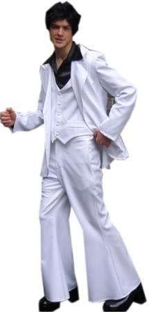 Ready to Disco Dance the night away? Then strut your stuff on the dancefloor with this iconic three piece white suit. Come and see our wide selection of 70’s costumes and boots. Let us put on your dancing shoes.